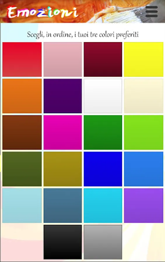 This app comes from the research "Colour and Communication" which began in 1974 thanks to art historian Esther Fenizia Galdo.