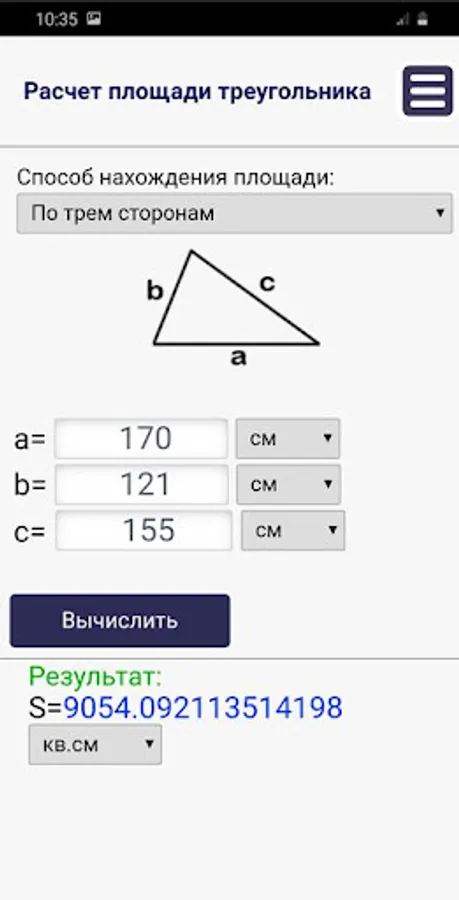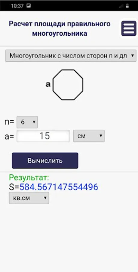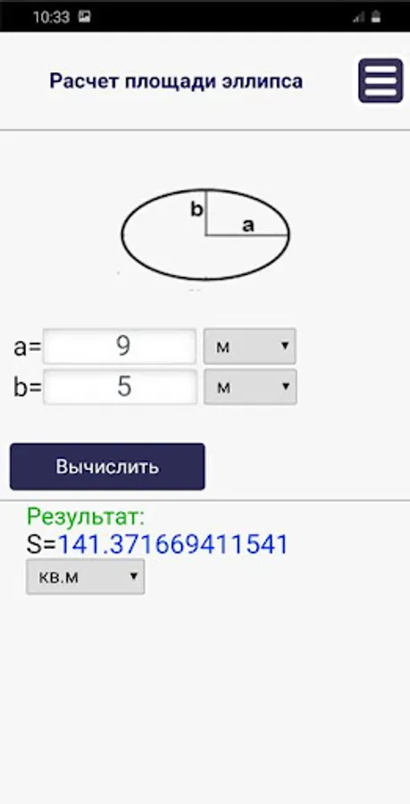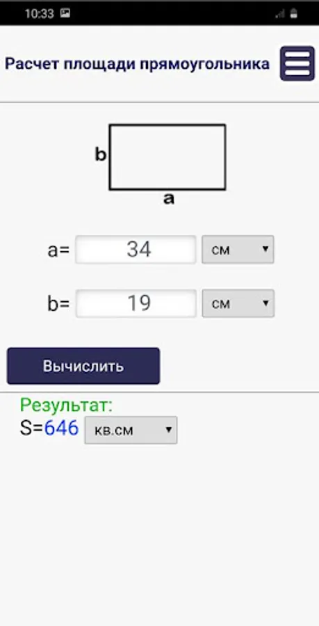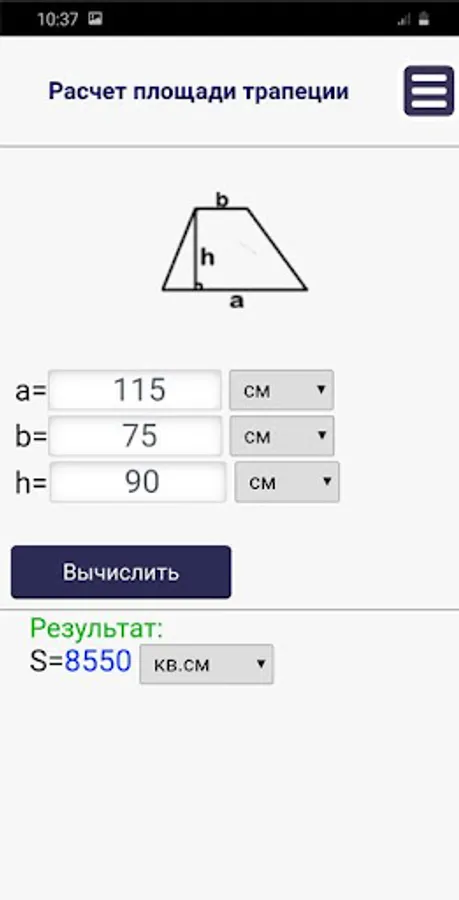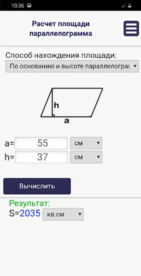With this application, you can calculate the area of two-dimensional geometric shapes.