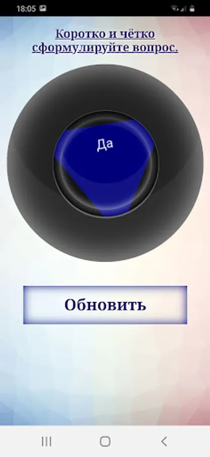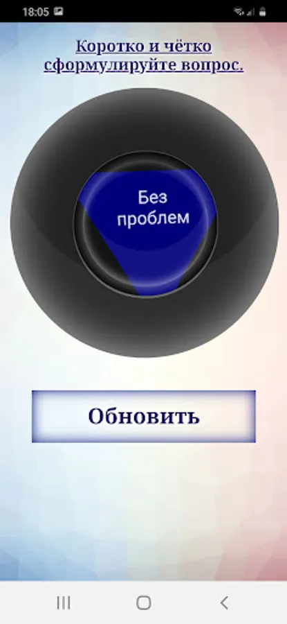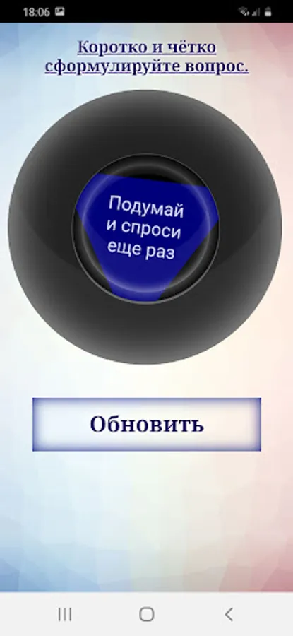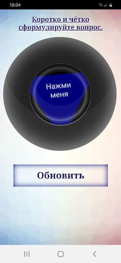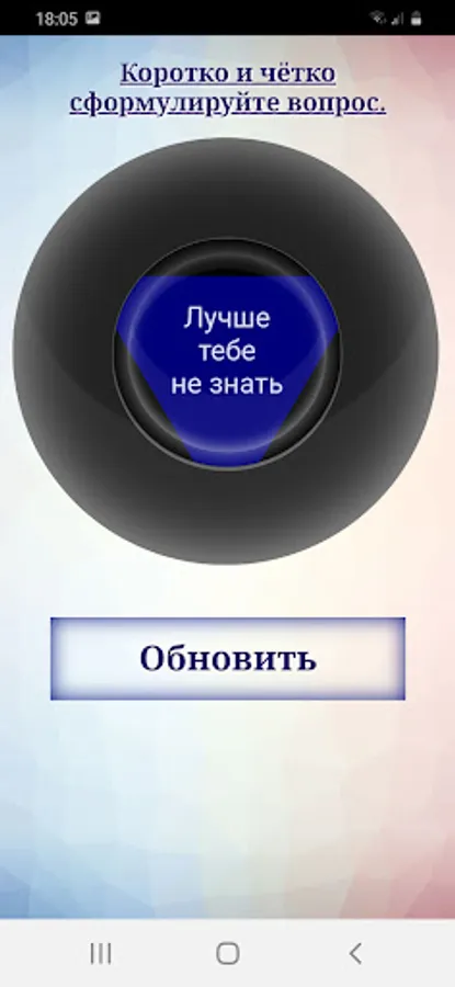 The magic ball in this application has one feature. He may simply stop and not respond to your actions if he considers that you are abusing him. In this case, you should consider your actions and update the ball.