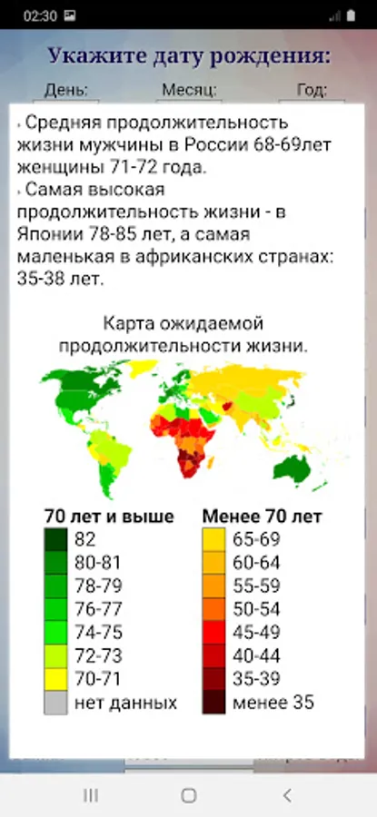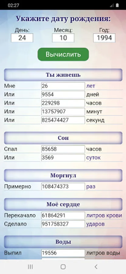 Life Calculator is a fun application that, in addition to calculations, provides informative information.
