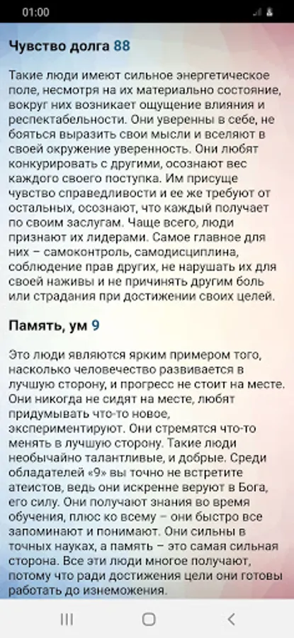 - The presence of one number means that the corresponding quality is very weak. Moreover, some numerical combinations show that a person is in an illusion about his true qualities and is trying to prove to himself and others that, on the contrary, he is generously gifted in one area or another.