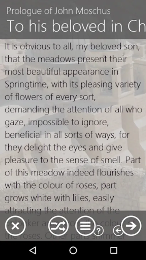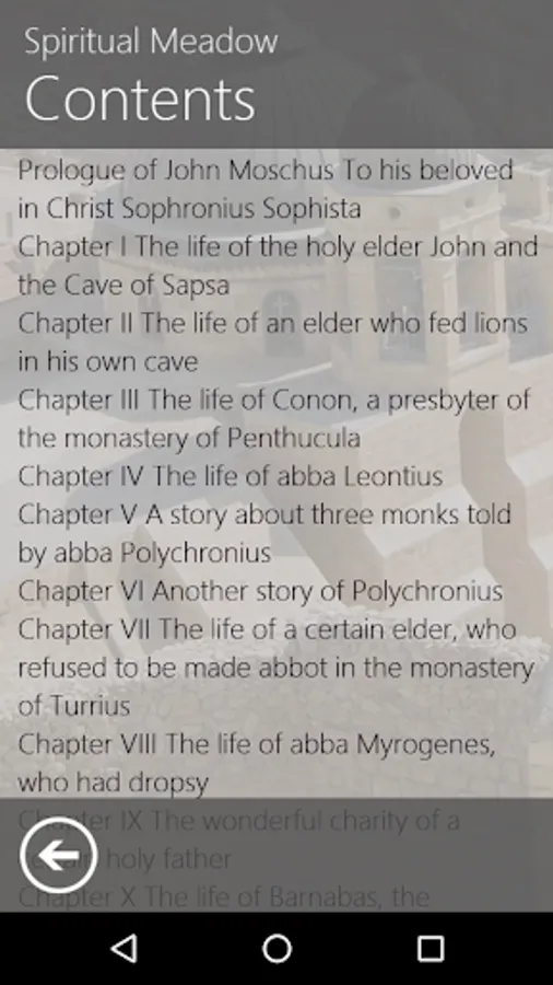 In the Spiritual Meadow, we come to writings with a very different atmosphere from those of the earlier Fathers of the 3rd and 4th Centuries. John Moschus' dates are c.550-619, and by the time he was writing the church had been through various theological turmoils which are reflected very clearly in this book.