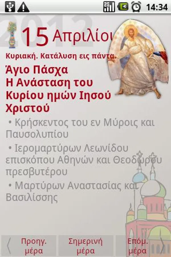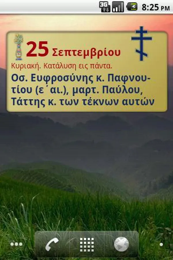 Does not require internet connection, so it will display the feast, or the saints of the day, even if you are on Sinai or Mount Athos :-)