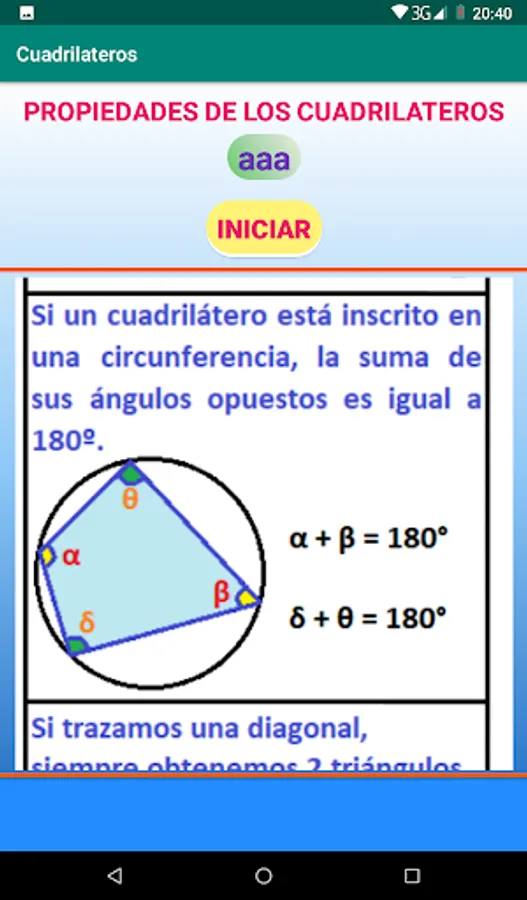 La aplicación “Cuadriláteros” ofrece ejercicios de clasificación y propiedades de los cuadriláteros.