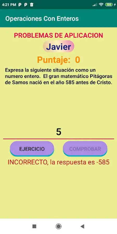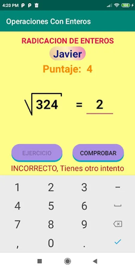 The "Operations With Integers" application offers exercise on 3 levels: