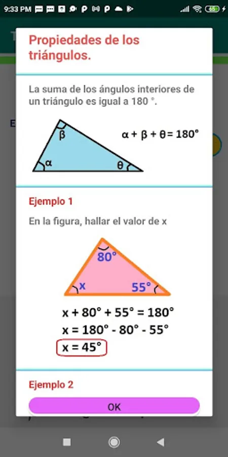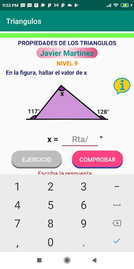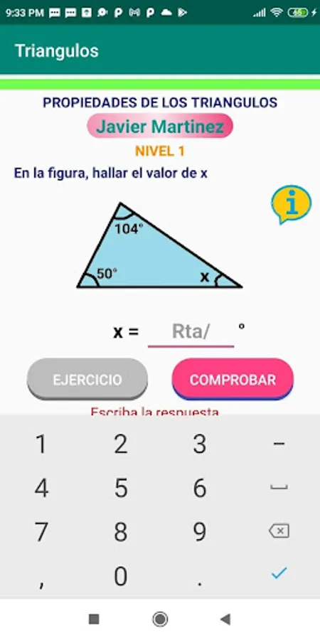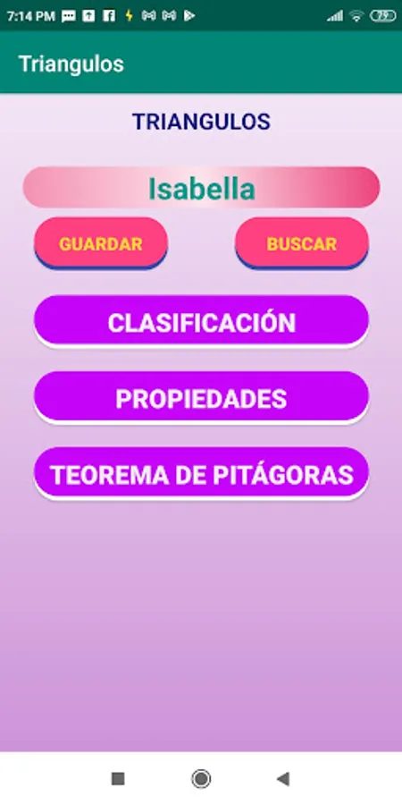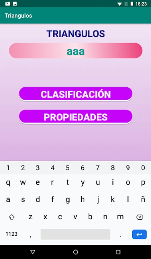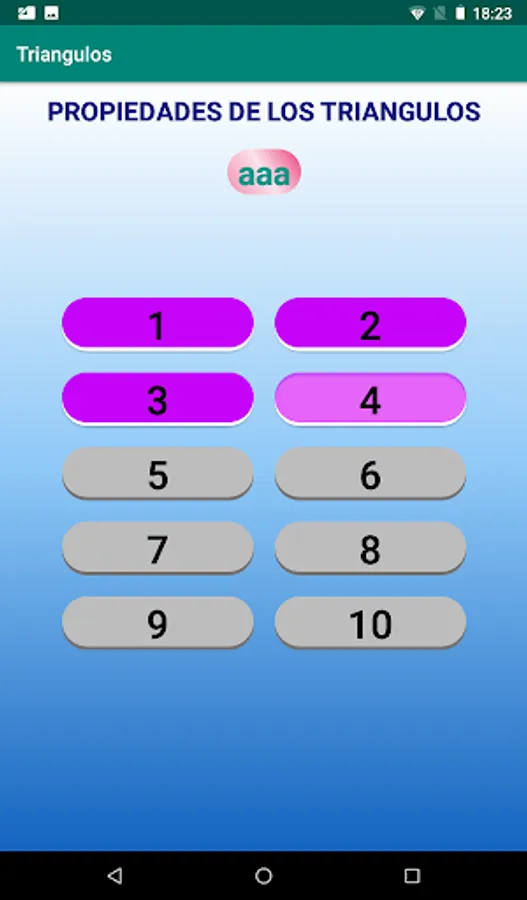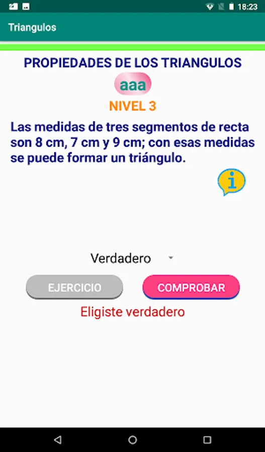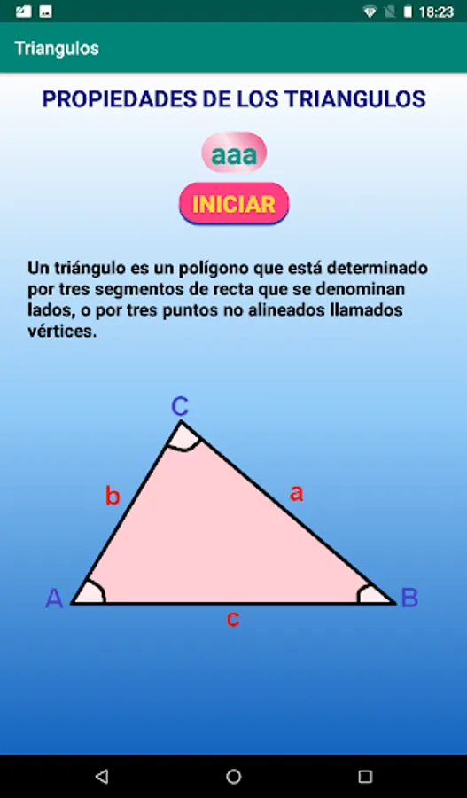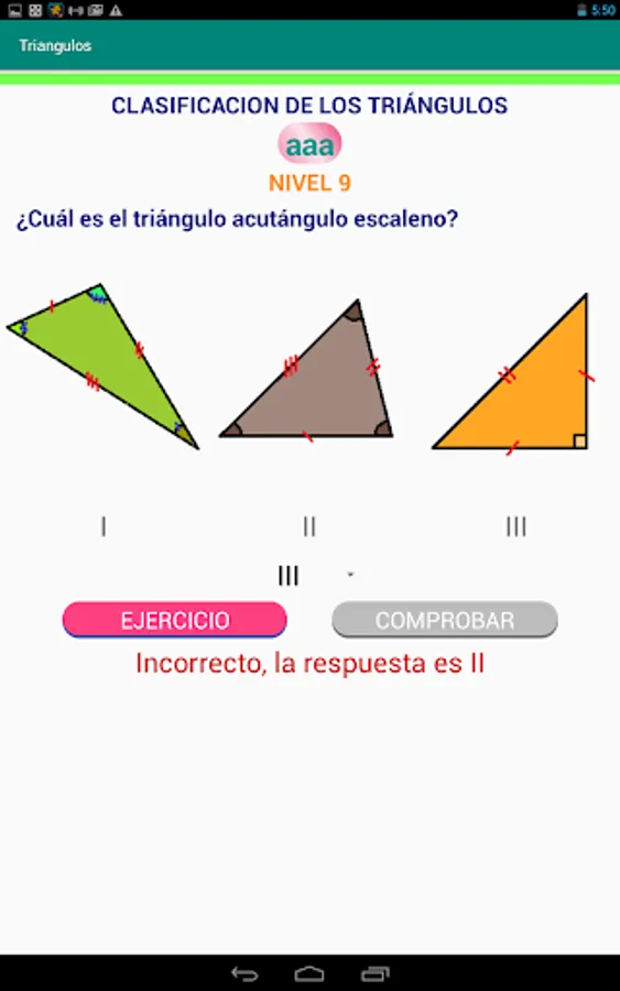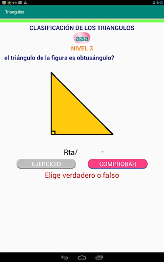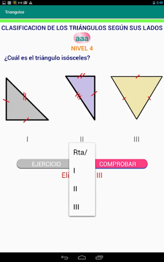 The "Exercises on Triangles" application offers exercises on: classification of triangles, properties of triangles and exercises on the Pythagorean Theorem.