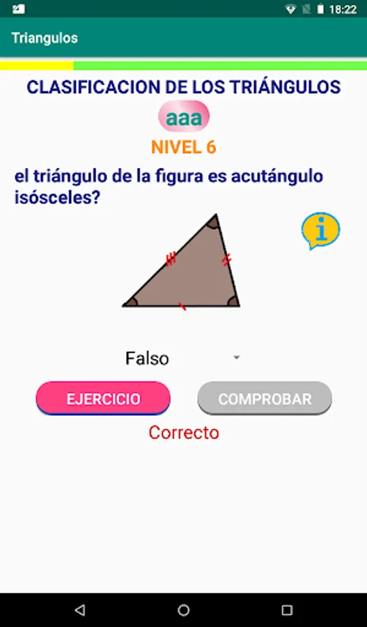Each exercise consists of 10 levels that are activated when you perform 5 correct exercises in series, each time you go up the levels the difficulty increases.