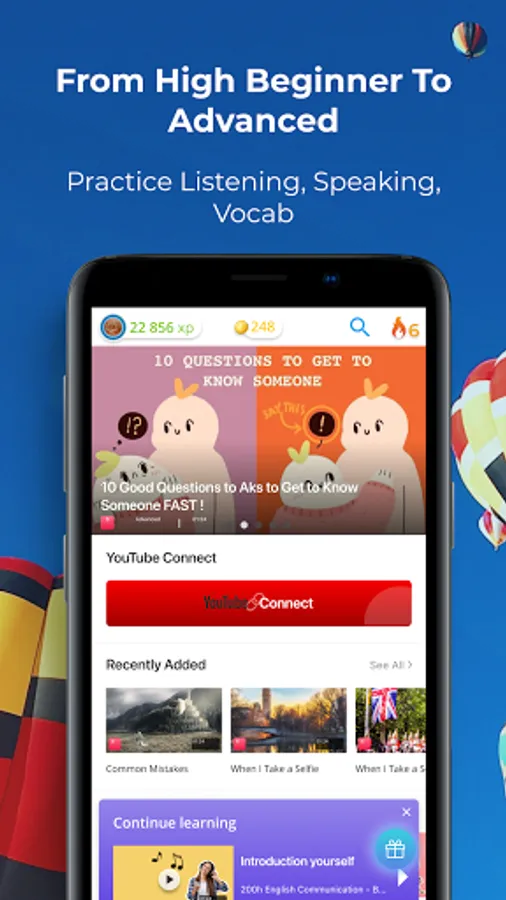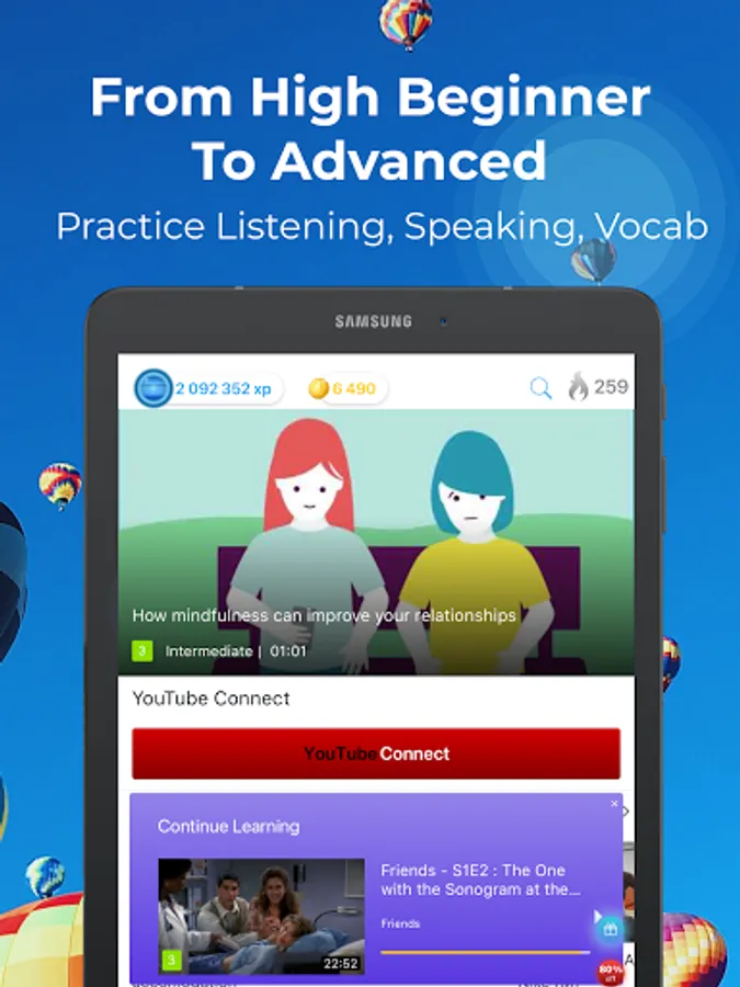 Learn English in context at home with your favorite YTube videos, improve fluency with interactive games in 10 minutes, and track your daily progress. Discover a unique way to learn English!