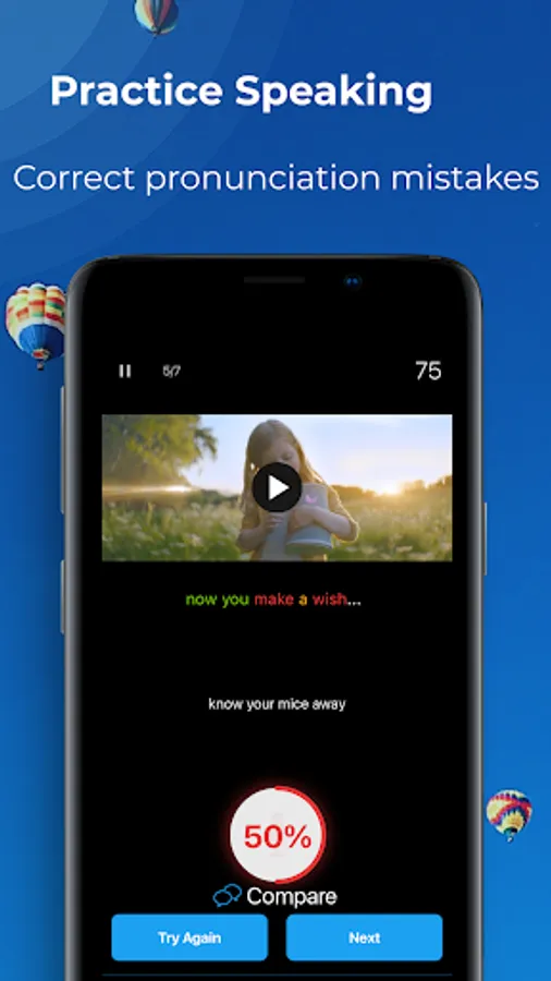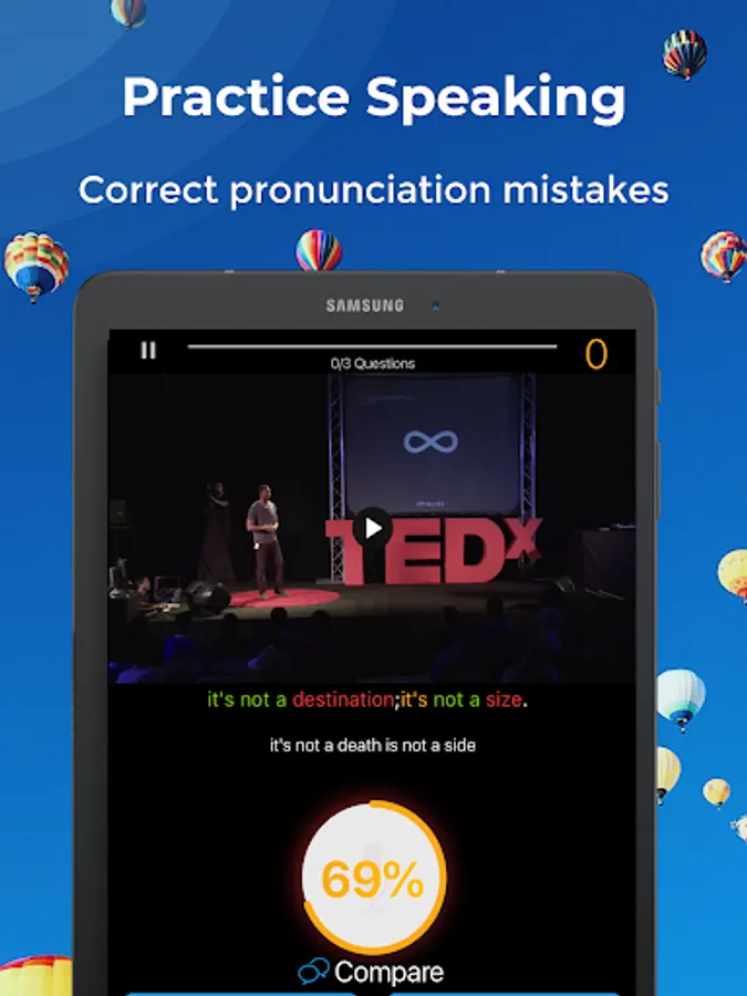 • Listen and mimic the speaker's speech. Our latest speech recognition technology will analyze your speech and highlight your pronunciation mistakes.