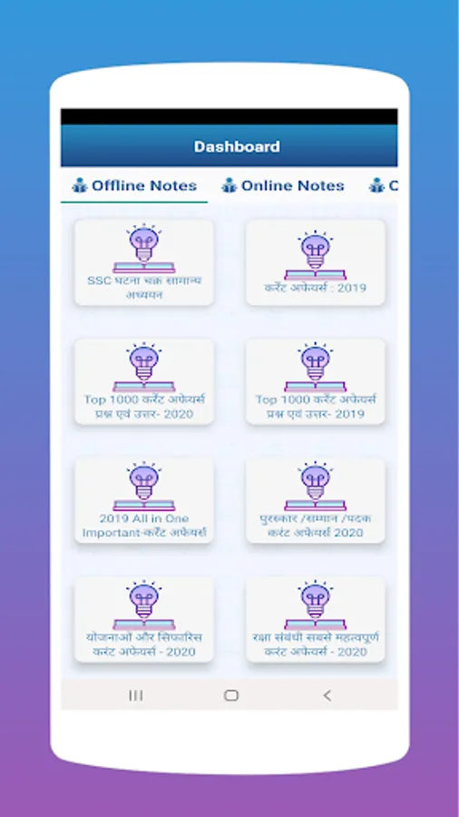 This App contains various study notes based on General Studies, General Knowledge, and Current Affairs in Hindi.