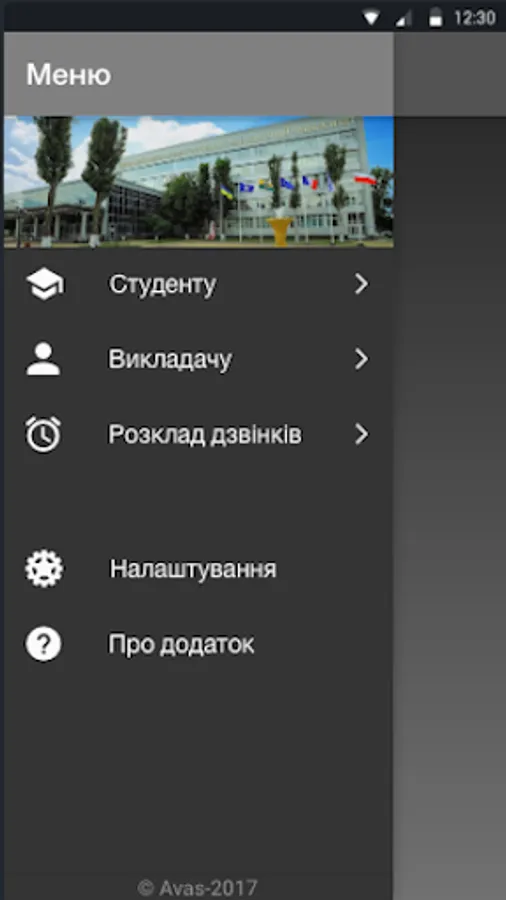 The application is designed to quickly find the schedule of a group or teacher and some other useful information