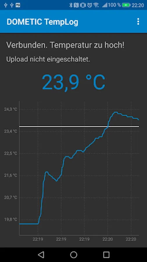 To use DOMETIC TempLog you will require a DOMETIC Bluetooth module. Once activated, the module transmits the current temperature to your Android device.