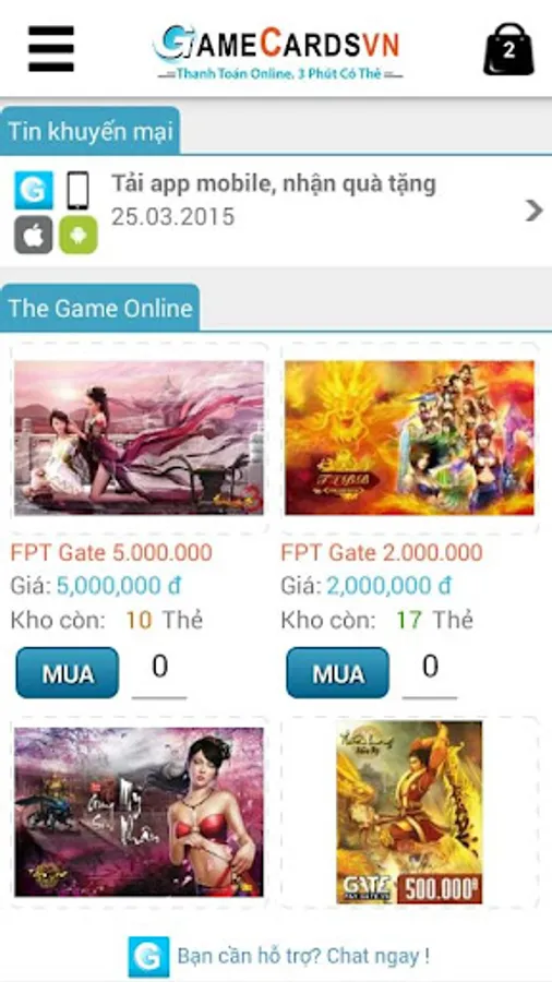 Chúng tôi có dịch vụ hỗ trợ khách hàng 24/7 ngay trong app. Khi quý khách có bất kỳ yêu cầu nào, chỉ cần 1 chạm tay nhẹ trên màn hình là có thể kết nối được với dịch vụ hỗ trợ khách hàng của gamecardsvn.com