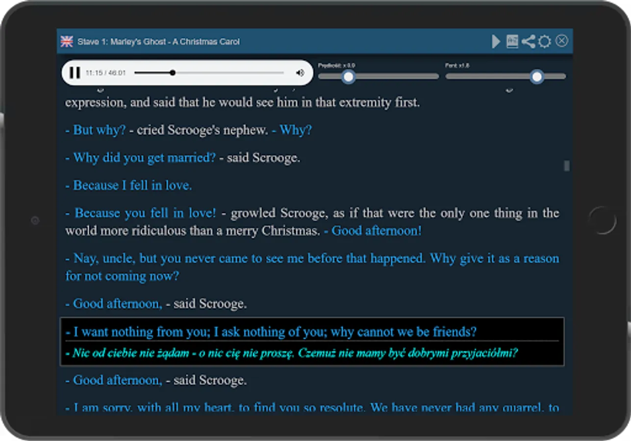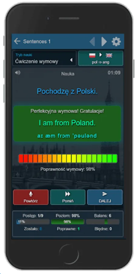 The added Polish pronunciation of words allows for "stepless" learning in all conditions.