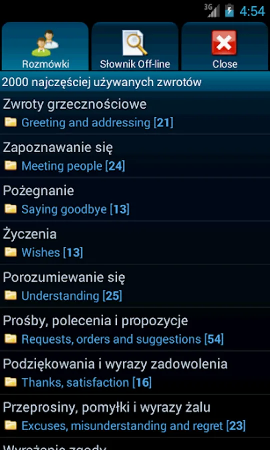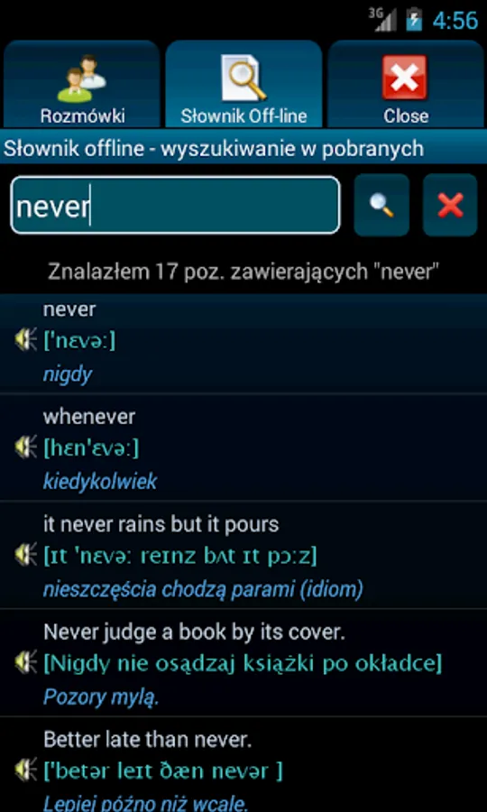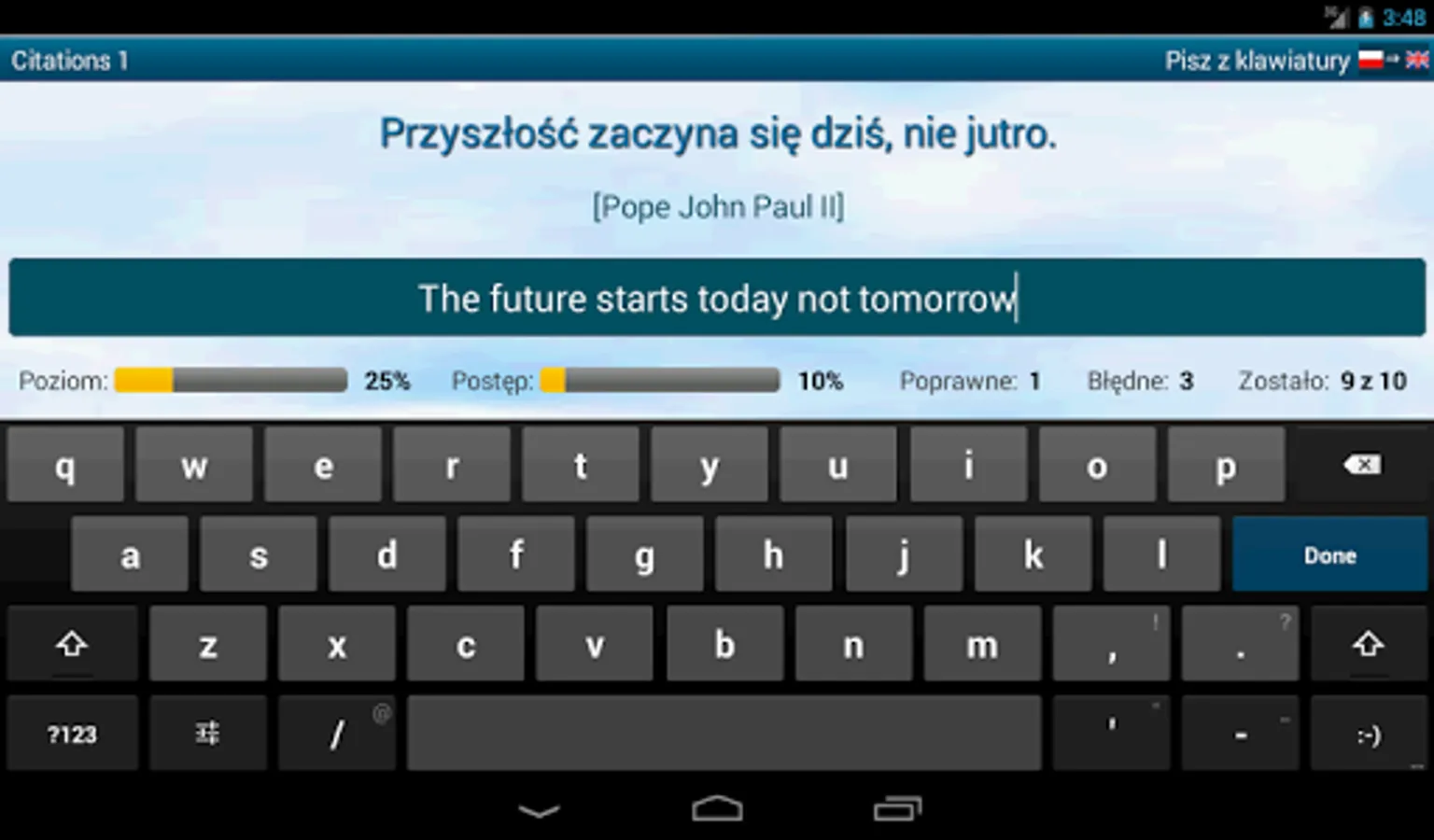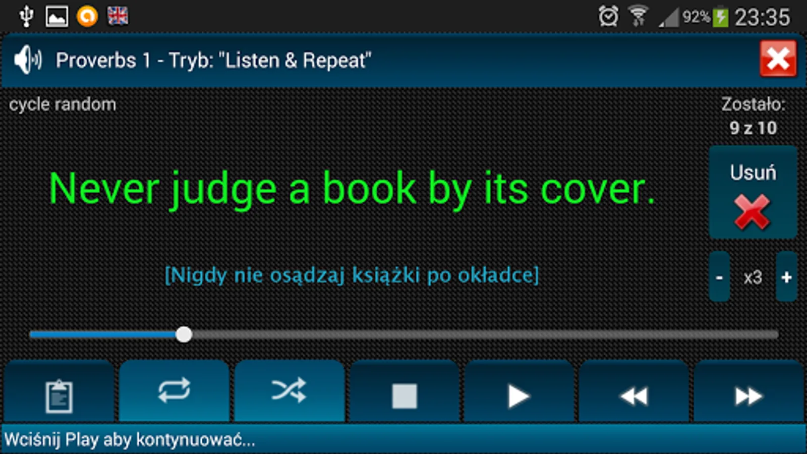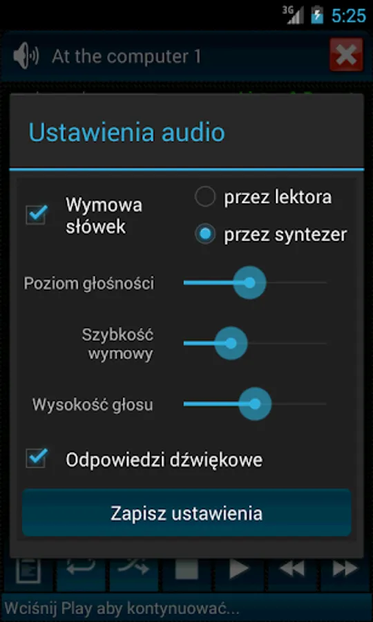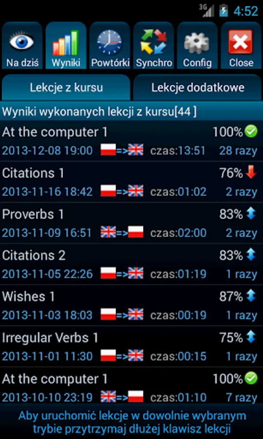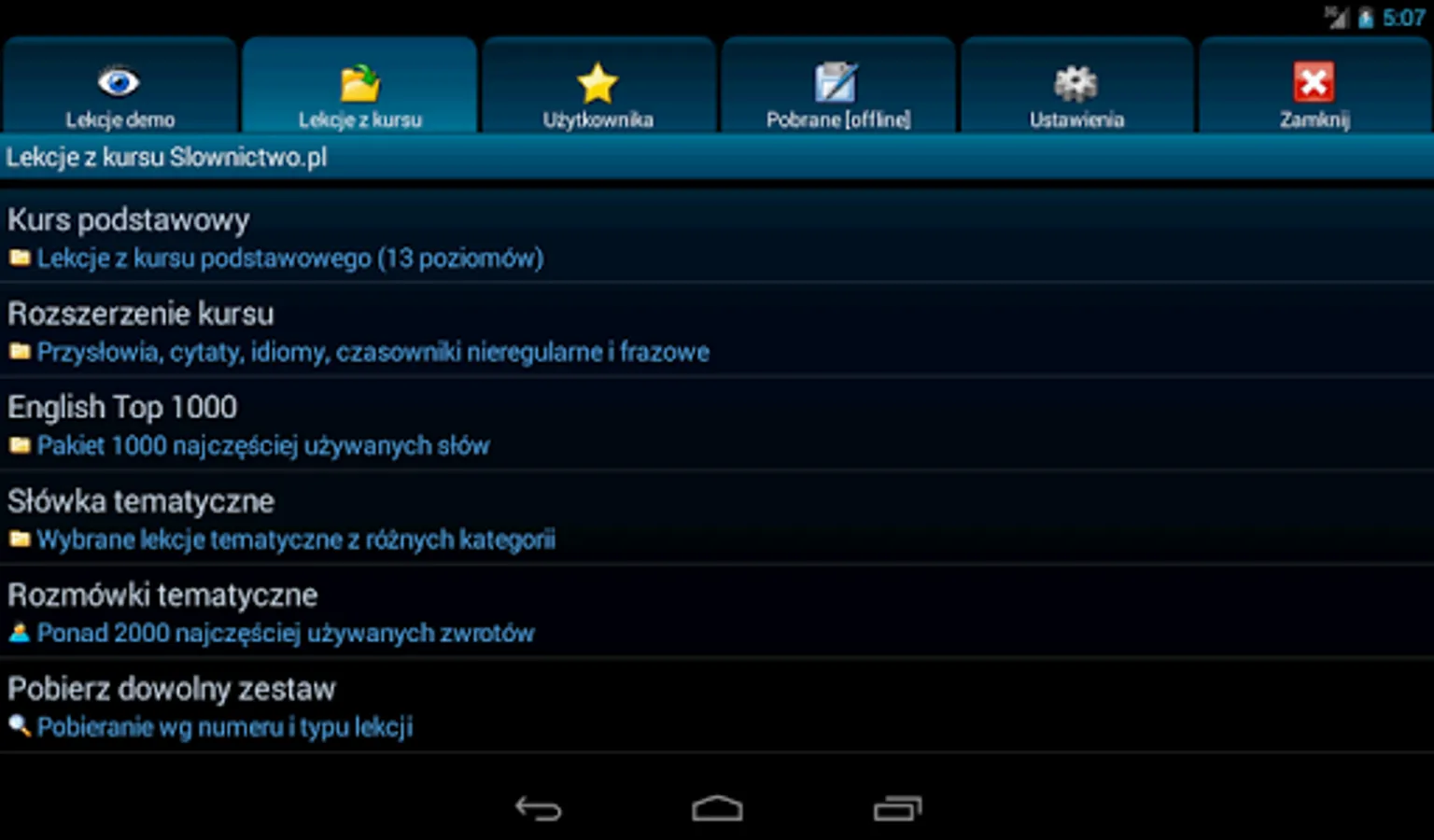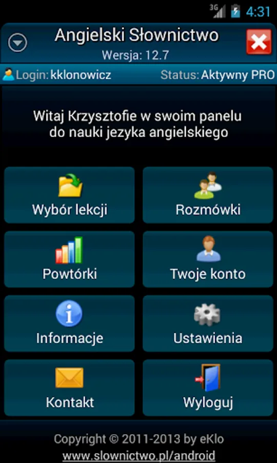 Note: This version of the application is no longer supported and does not allow you to log in and synchronize results with the website. At https://play.google.com/store/apps/details?id= eklo.slownictwo.wrapper a new version of the application is available, supporting many languages and the latest learning features (including a pronunciation trainer)