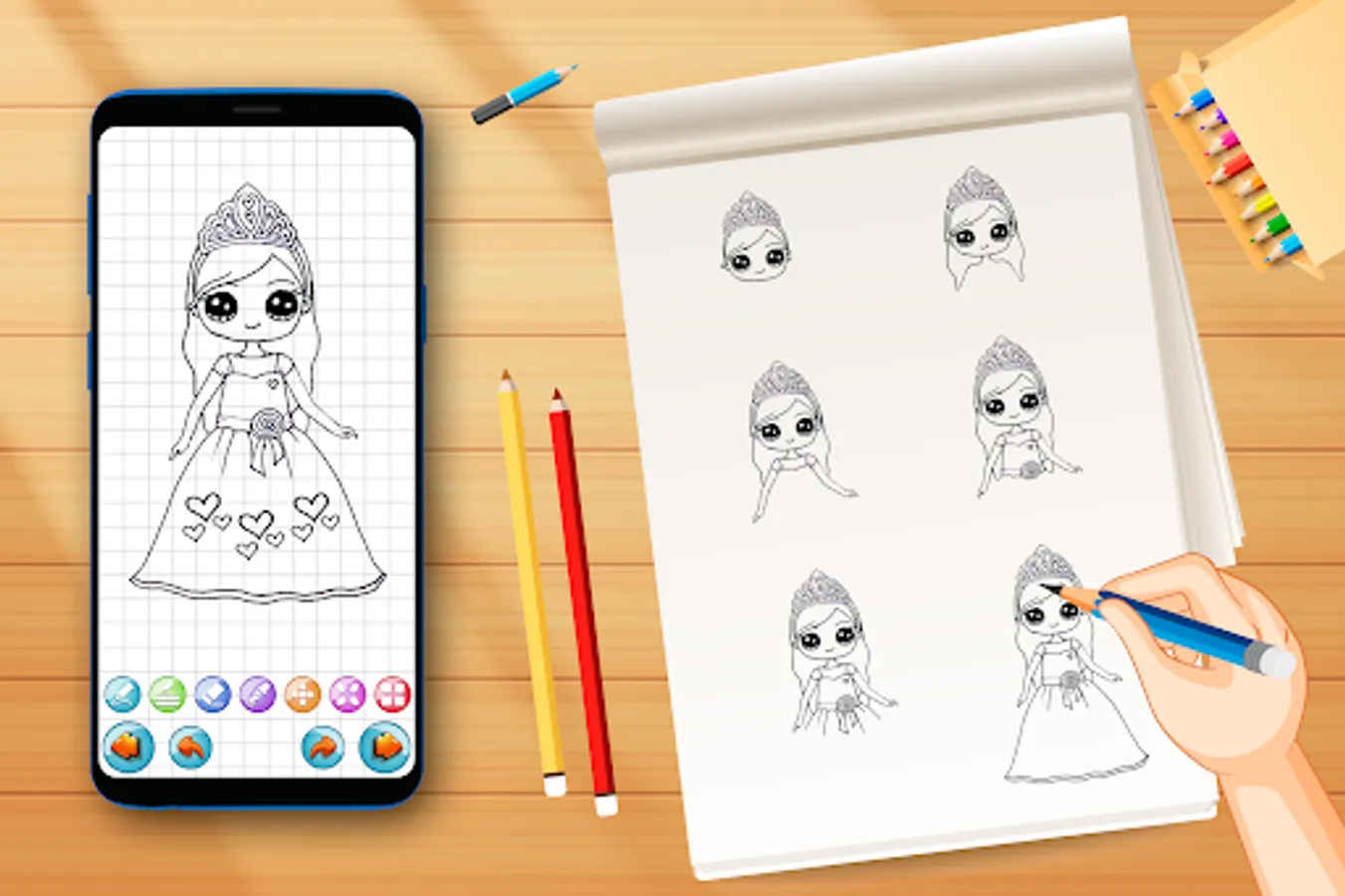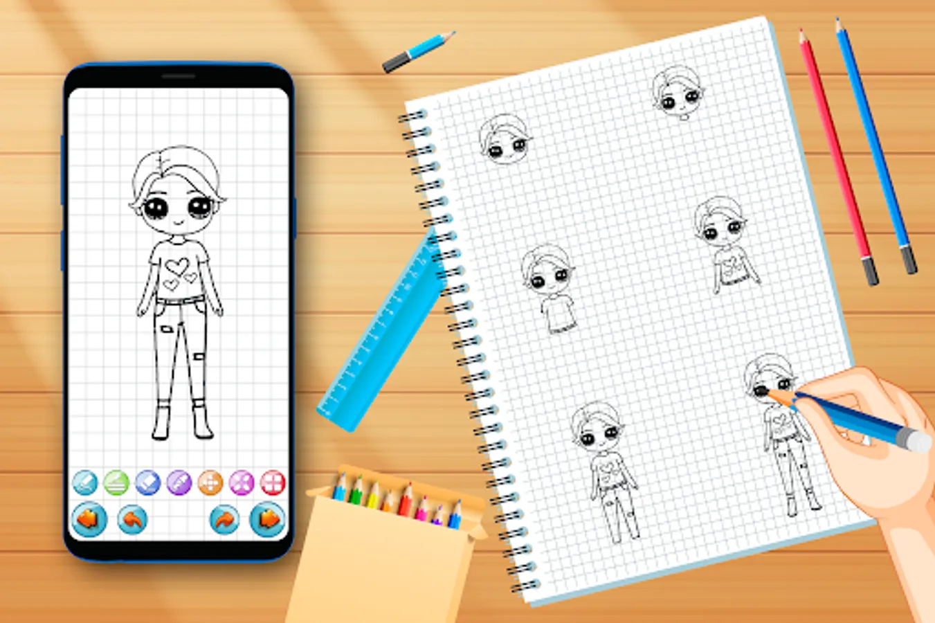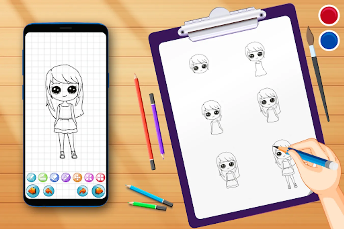 Its ideal app for all boys and girls who want to be future artist and love drawing. Just select your favorite kawaii girl drawing and follow the steps. Now draw and color with confidence using Draw Cute Girls - Learn How to Draw Famous Girls app.