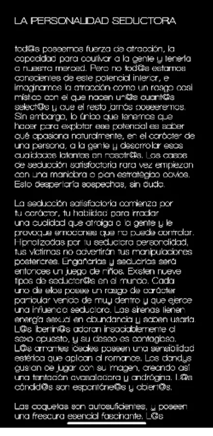 It is about seduction, a skill that is within the reach of anyone and that, used with skill, allows one to manipulate, control and bend the will of others without resorting to physical violence or psychological pressure.