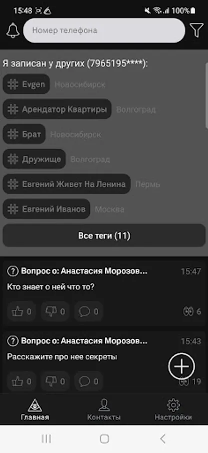 An application to find out how you or the numbers you are interested in are recorded by others in the phone book. Unlike GetContact, all functionality is free. In addition, you can read reviews about a person or write a review about anyone.