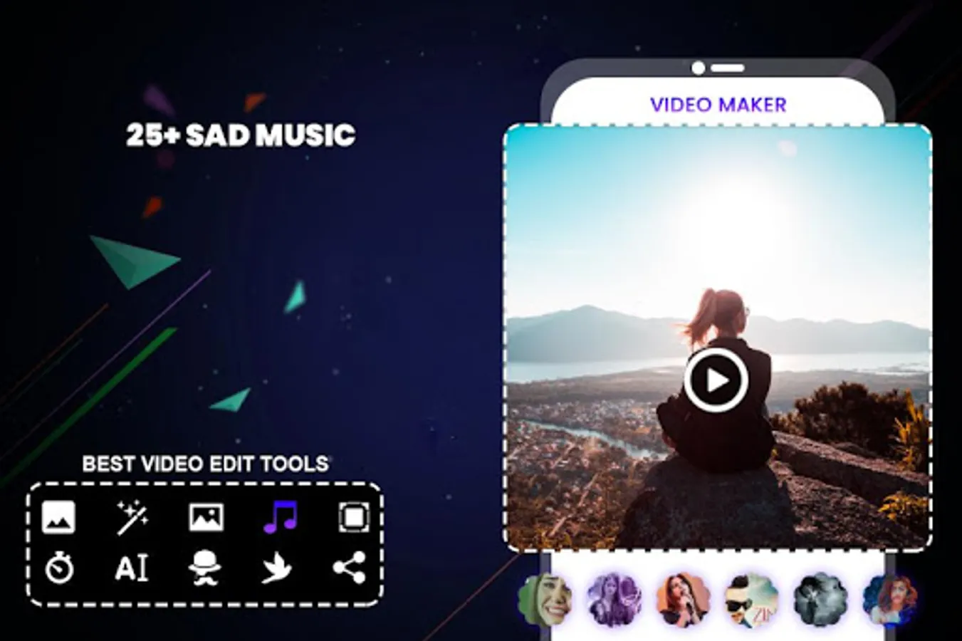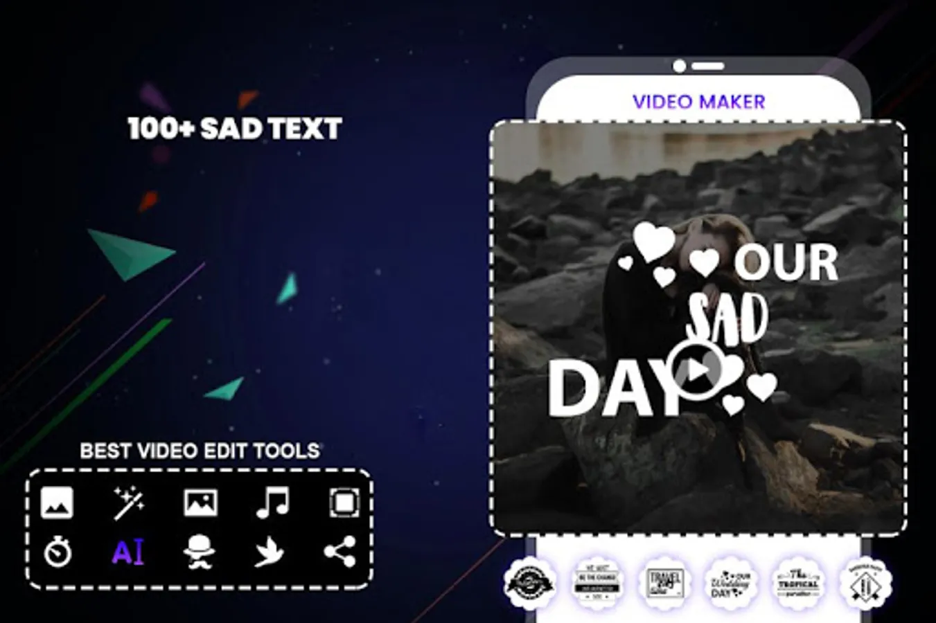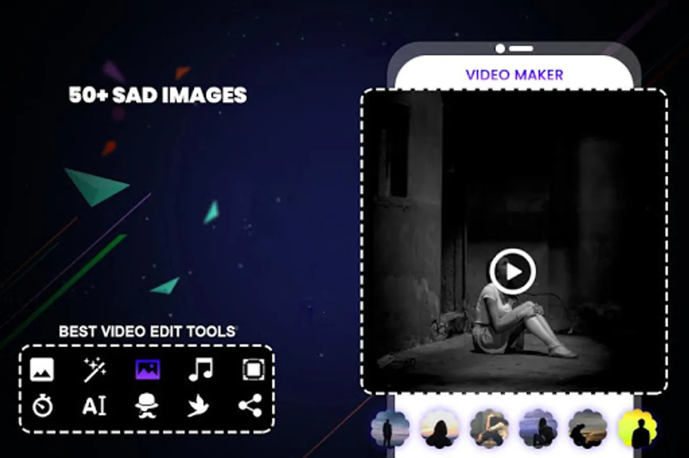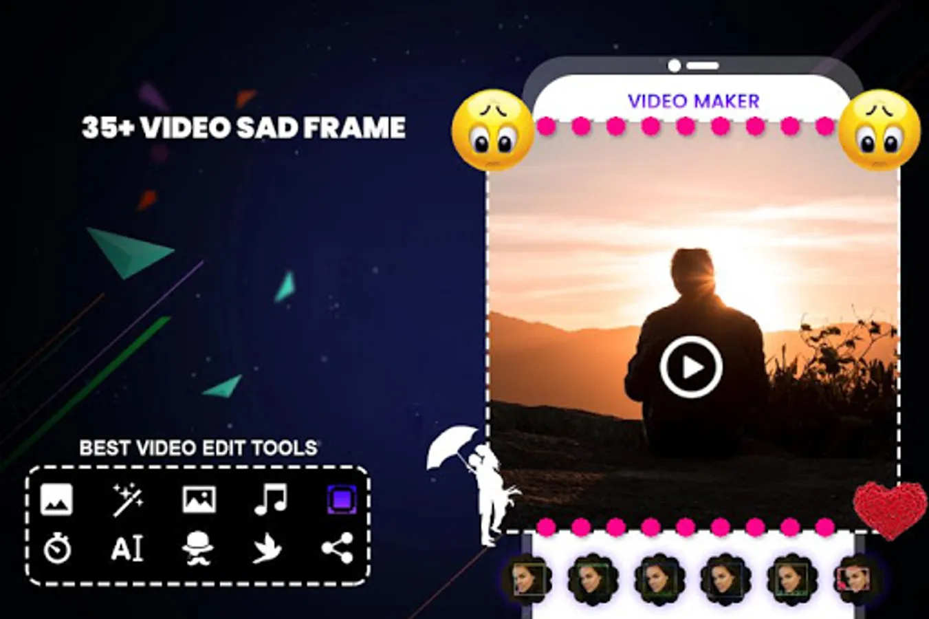 Creating sad video maker from pics, frame and music and share sad music video story.