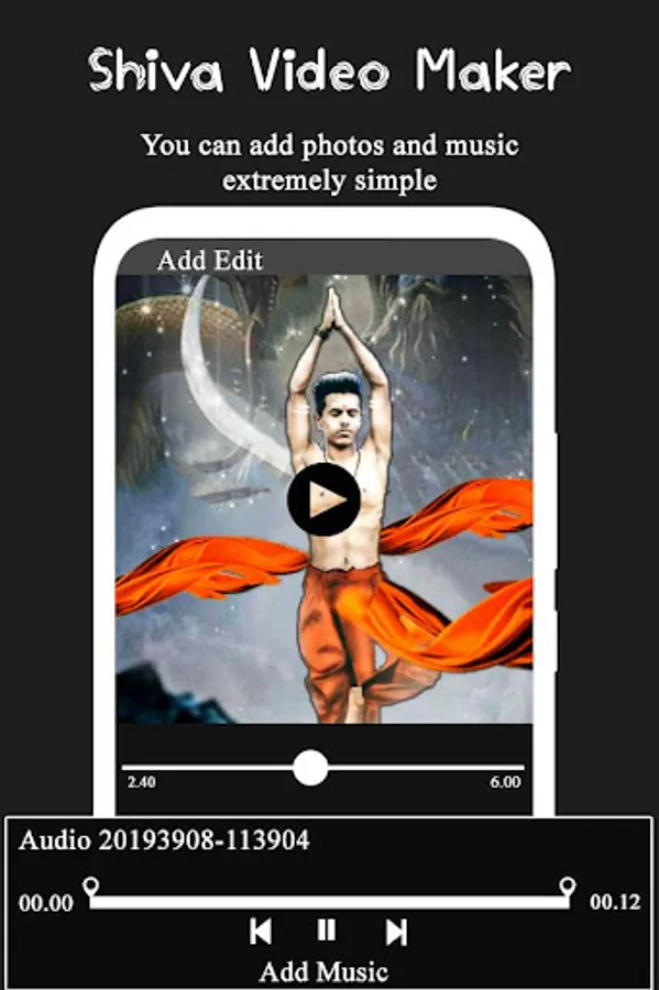 Create a load shiva video maker with shiva frame, images, shiva music.