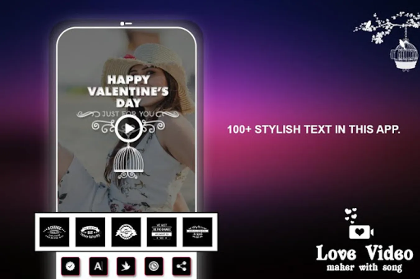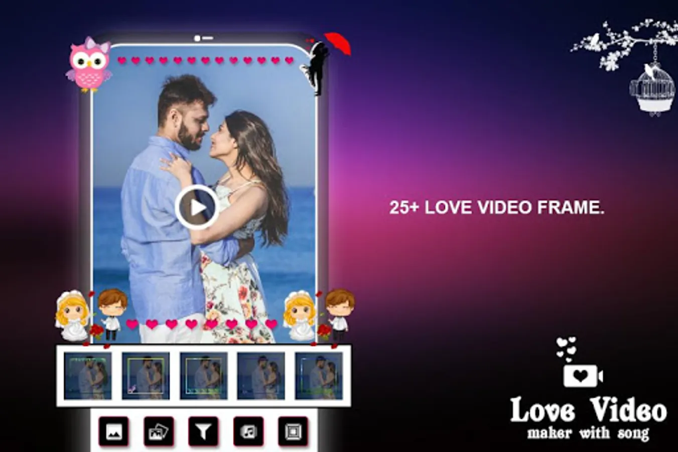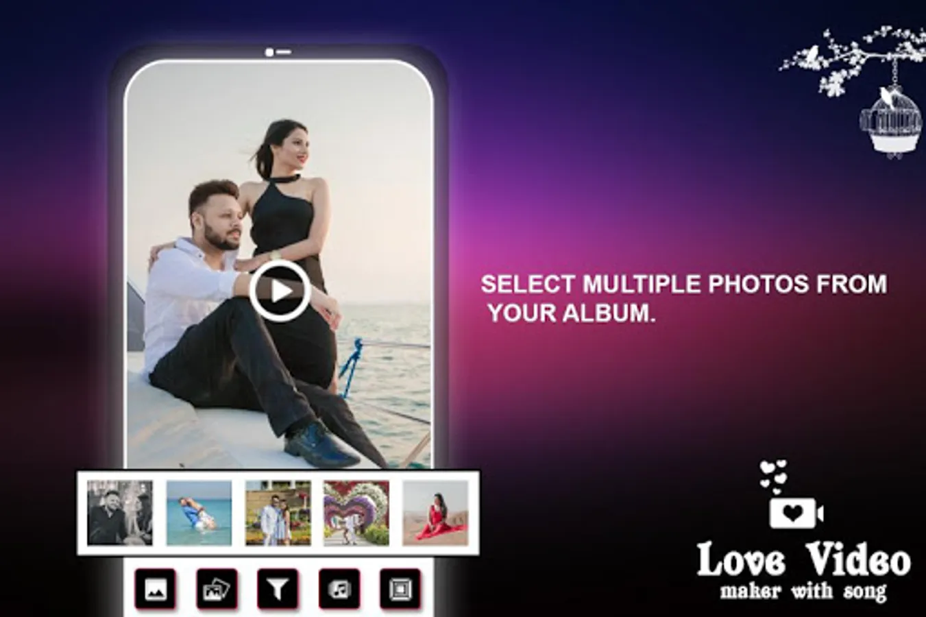 Love Video Maker with song app creates photo slide-show with song and latest theme.