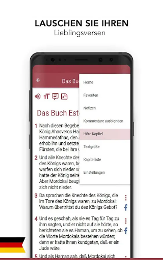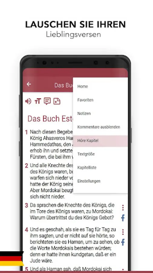 * Receive notifications on the phone (Set the time one you want to receive the verse: daily, Sunday, or never.)