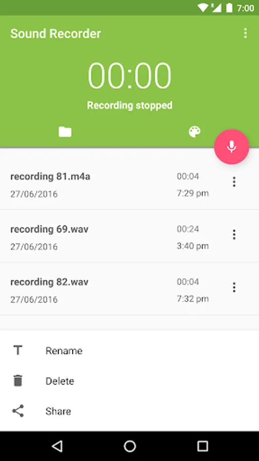 Sound Recorder by ELC can record High Quality audio and voice notes with an instant start widget. You can seek through audio recordings and share them on other apps like Whatsapp and Dropbox. You can customise the look and feel of the recorder. Choose from a variety of themes built into the recorder.