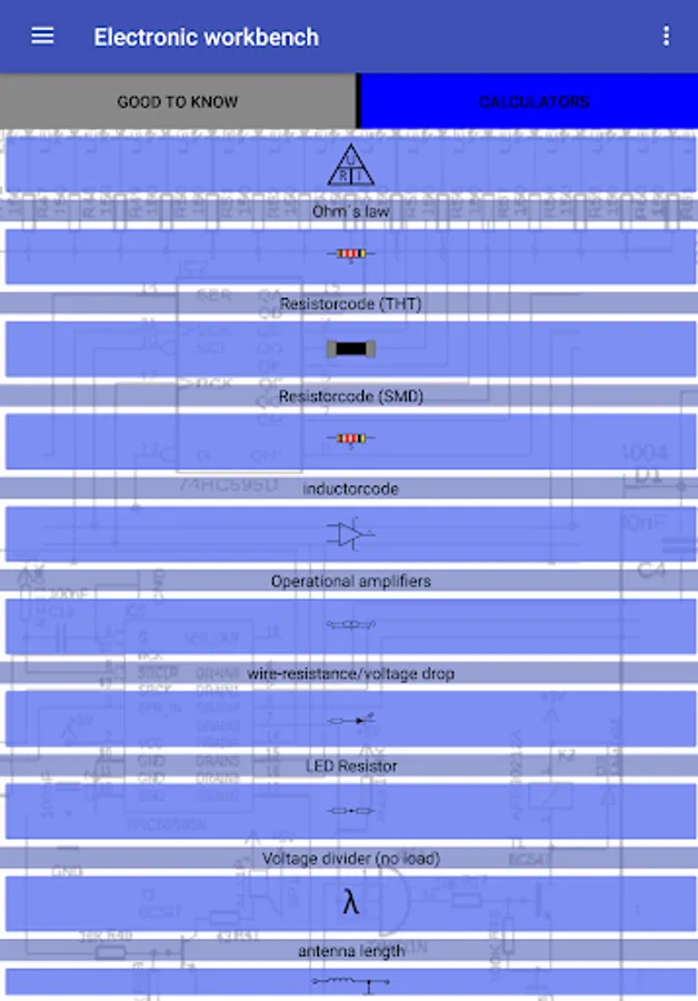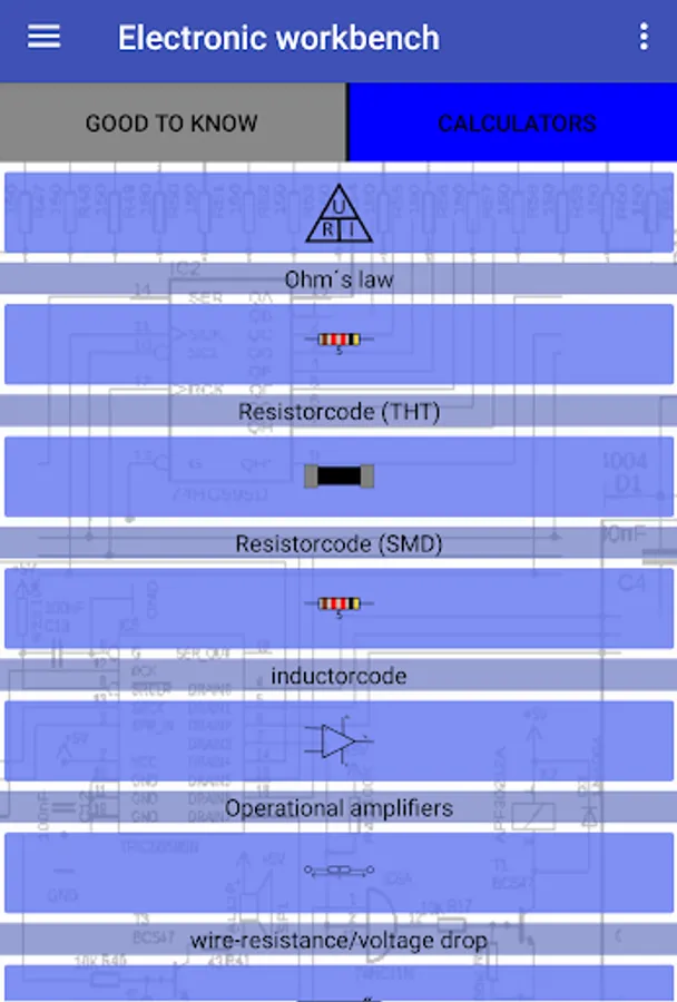 "Electronic workbench" contains lots of tools and references for your electronic projects, containing: