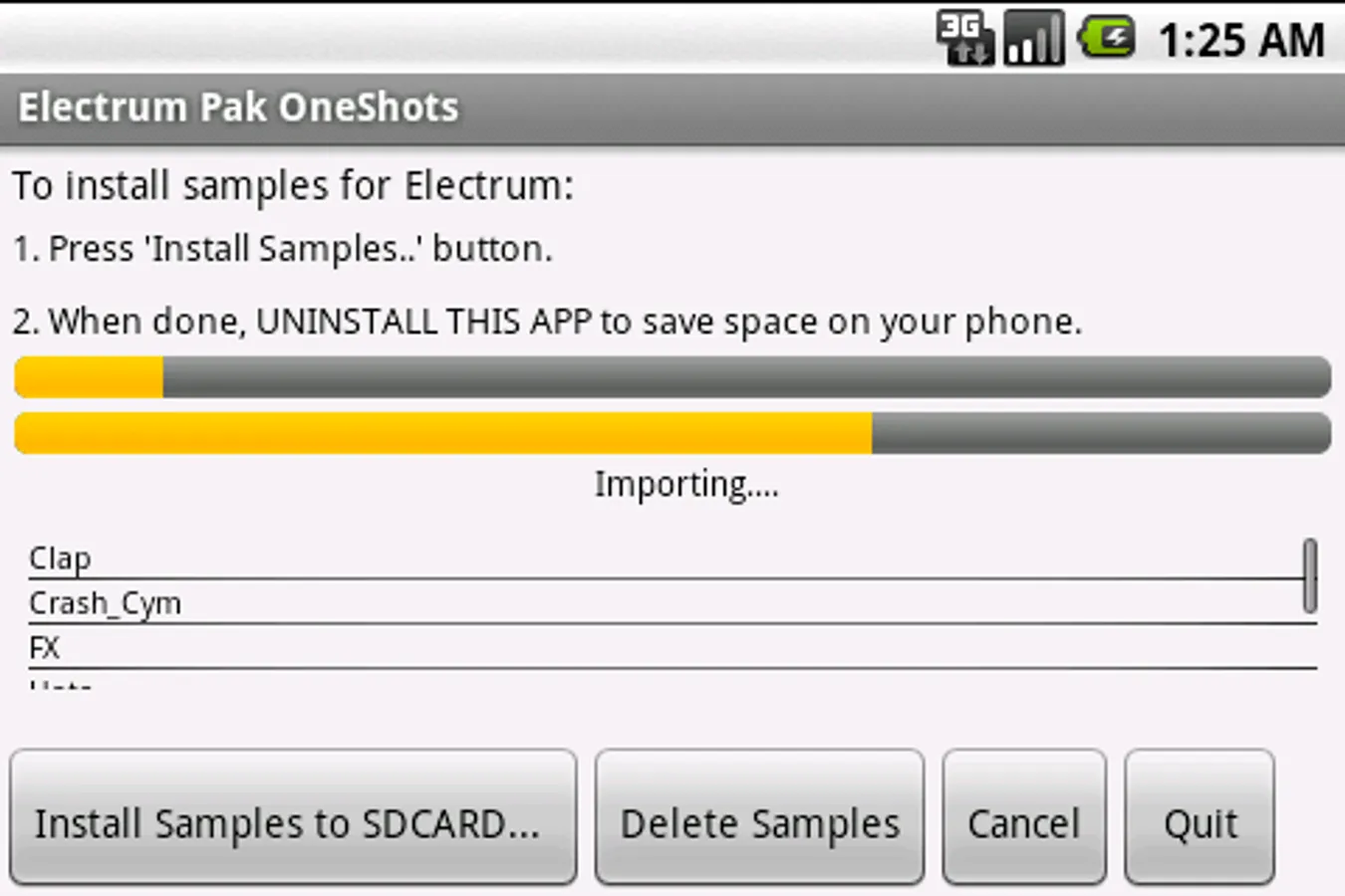 Samples will be installed to your sdcard in /sdcard/electrum/samples/electrumPakDubstep.