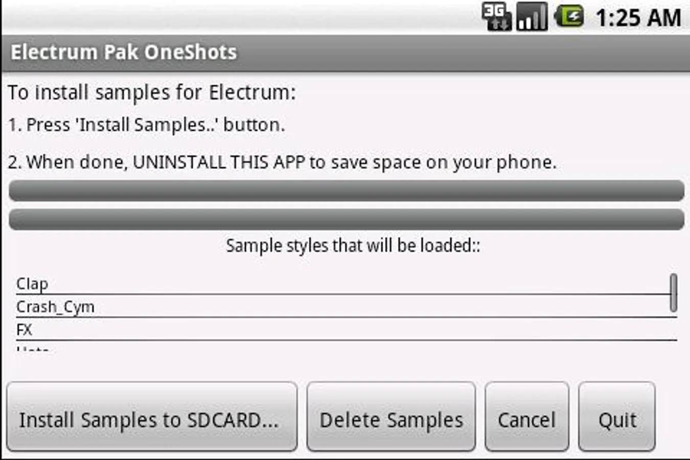 Samples will be installed to your sdcard in /sdcard/electrum/samples/electrumPakOneShots.