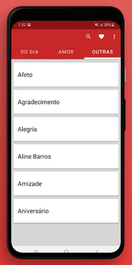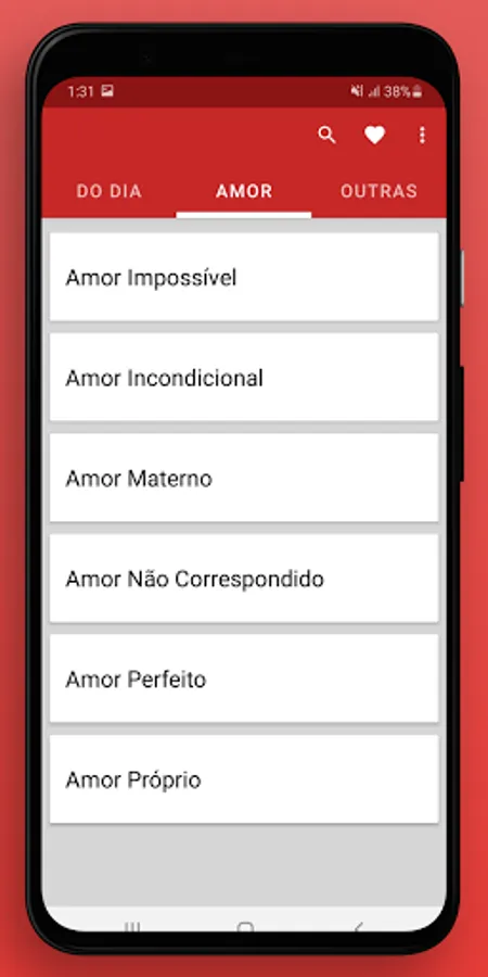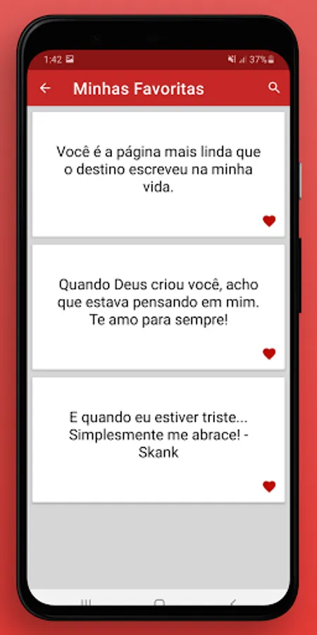 Messages and Phrases of Love is a phrases application that brings several options of phrases of love for mother, boyfriend, girlfriend, husband, wife, friends, etc. The application has thousands of phrases separated by categories, such as Distance Love, Love to God, Love and Friendship, I Love You, Dating Birthday, among others.