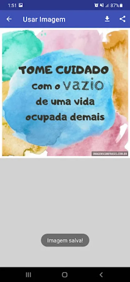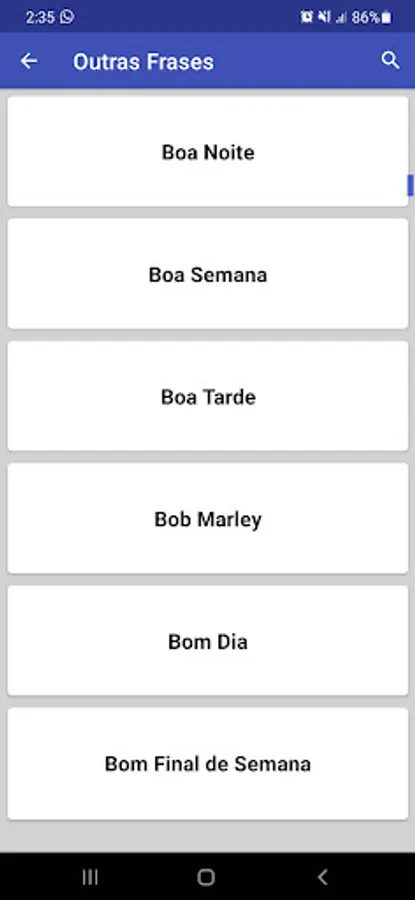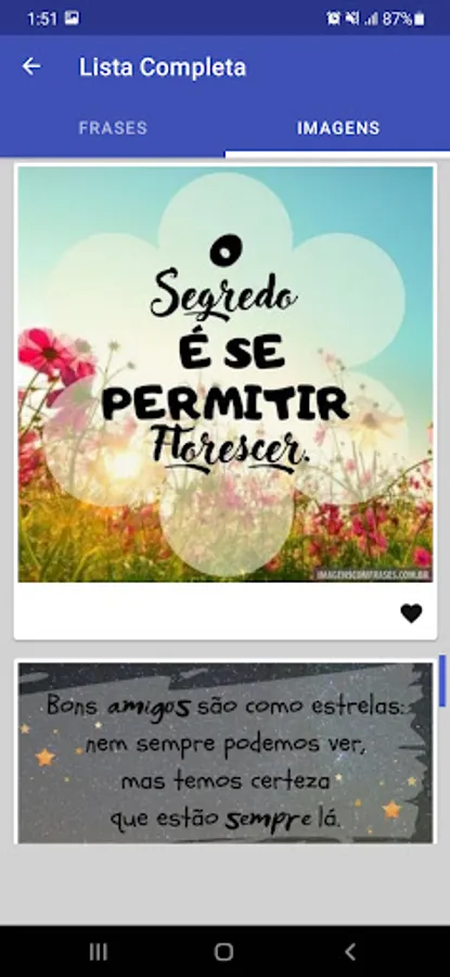 This phrase app also has beautiful phrase images for you to send as a message to your family and friends and even use to create phrase stickers using a wastickerapps of your choice. Several other categories with ready-made phrases are also present, being phrases of love, attitude, motivation, biblical, life, reflection, good morning, good afternoon and good night, among others.
