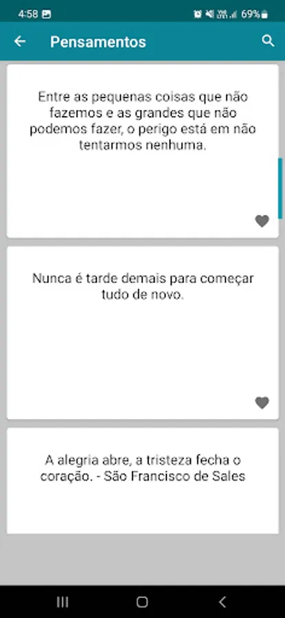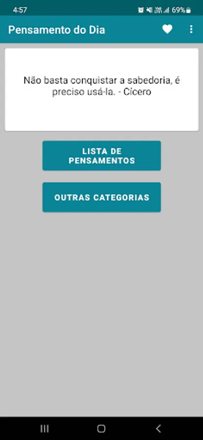 Have this application of Positive Thoughts and Phrases Ready for your day. It has phrases from great authors and thinkers, being positive, intelligent thoughts, reflection, positive affirmations, motivation, from Bob Marley, Buddha, Albert Einstein, Jesus Christ, Chico Xavier, Augusto Cury, Gandhi, Dalai Lama, among others.