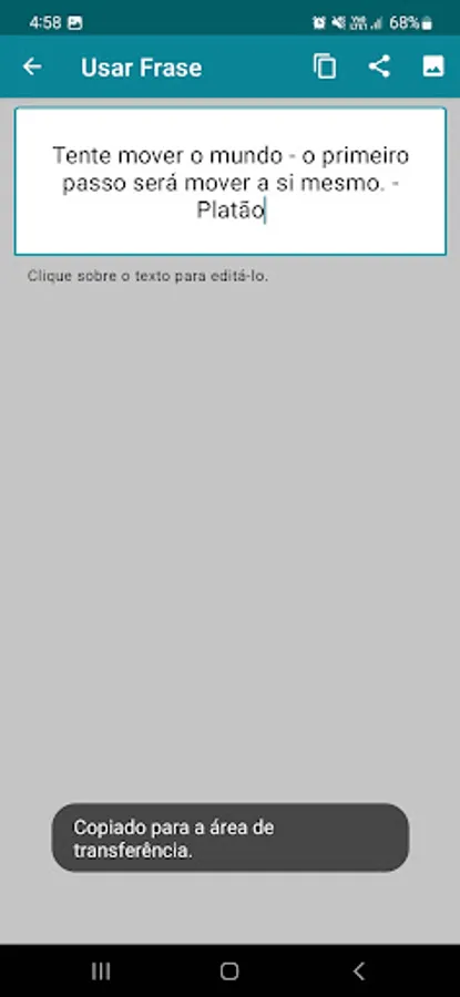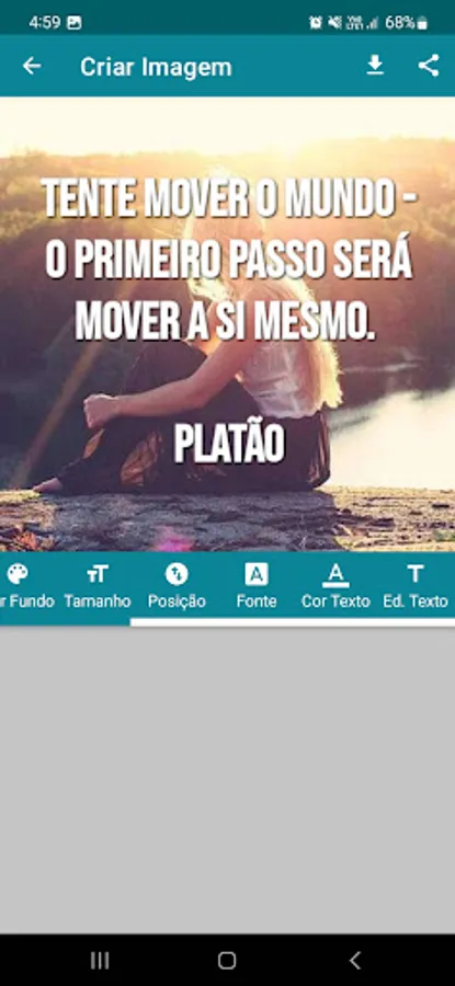 The application has thought of the day and thousands of phrases for WhatsApp status, captions for photos, being possible to choose thought by themes such as motivation, reflection, attitude, and love. It is also possible to create your own images with thoughts using your photos.