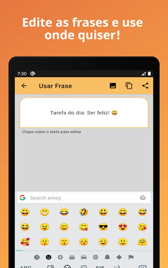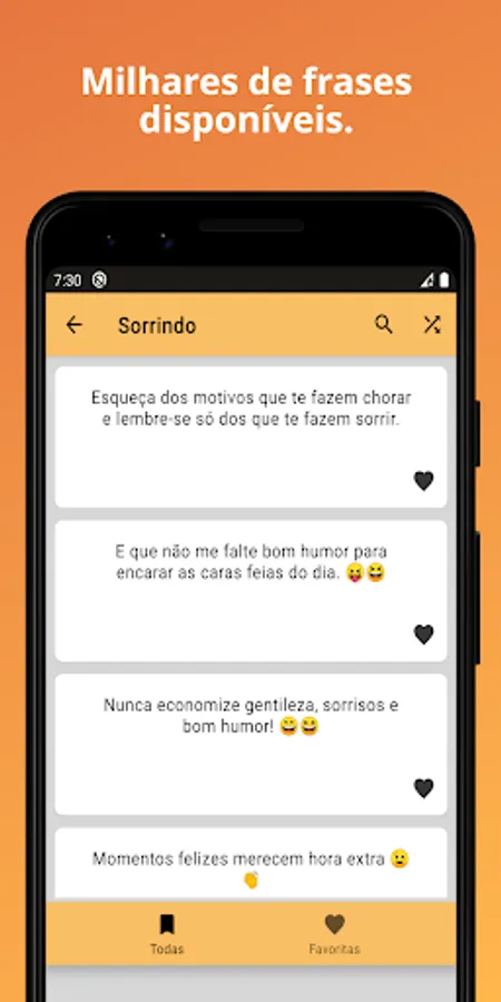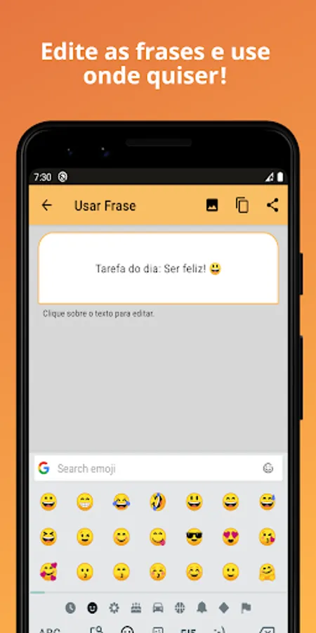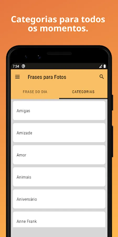 This application allows you to copy phrases for status 2022, caption for photo alone, and even create image with phrase using your favorite photos, being able to share images and phrases to WhatsApp, Instagram, Facebook, and any other application and social network you want.