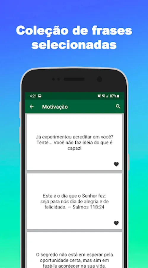 This motivation app also has several other categories for every moment of your day, such as: good morning, good afternoon and good night, love, thanks, biblical, life and wisdom.