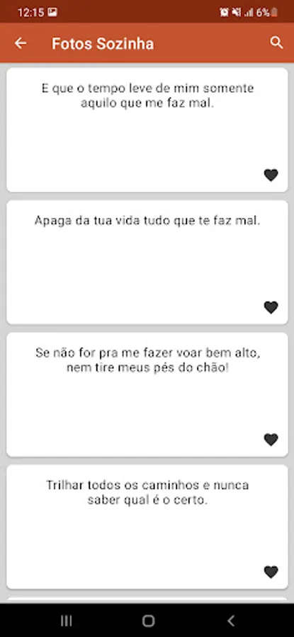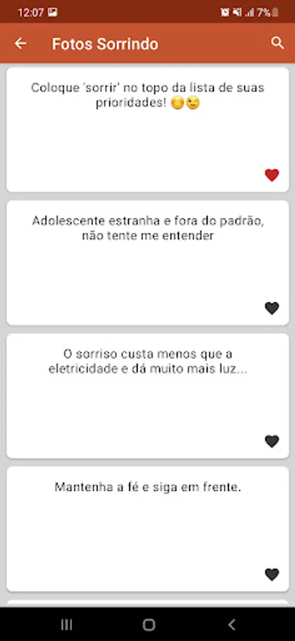 In addition, the application has other categories for you to use daily in your photos and status, such as love phrases, reflections, motivational, good morning, good afternoon and good night and you can copy, share and create images with phrases using your favorite photos, being possible to share on Instagram, Facebook, status for WhatsApp.