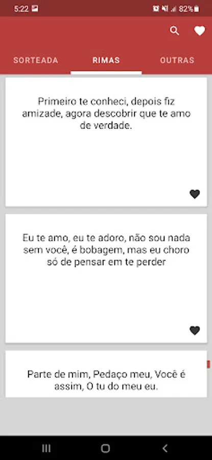 With the application Phrases de Rimas de Amor you will have several love rhymes to send as messages on Facebook and Instagram, and also use the phrases for status from WhatsApp and Tumblr.