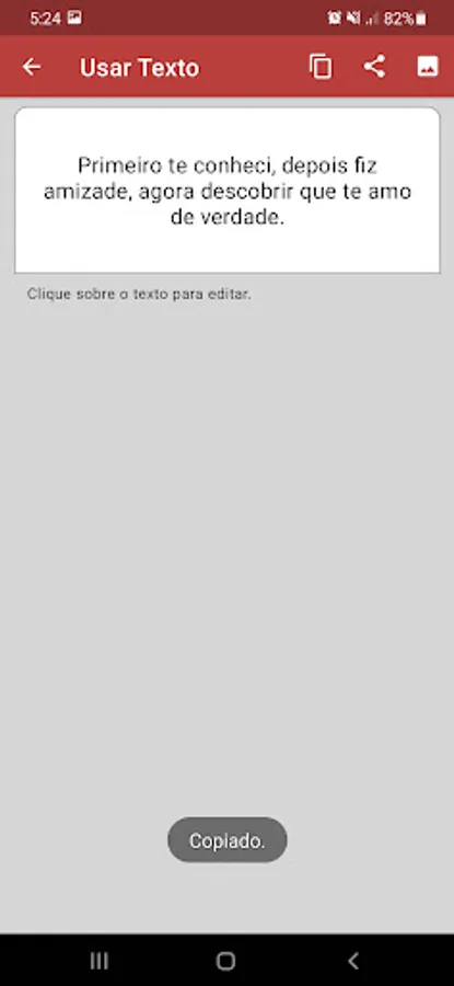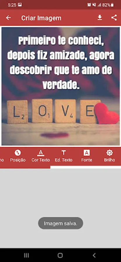 The app also allows you to create and edit images with phrases and has other categories, including love phrases, love indirects, crush, love lines, boyfriends, declarations of love, poetry, ready for you to use as phrases for photos, status of all cases and send to your passion!