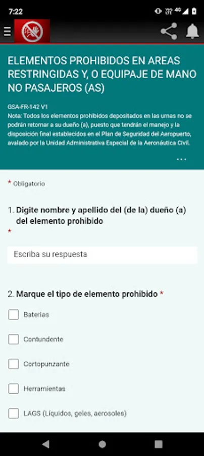 ITEMS PROHIBITED IN RESTRICTED AREAS AND, OR HAND BAGGAGE FOR NON-PASSENGERS (AS)