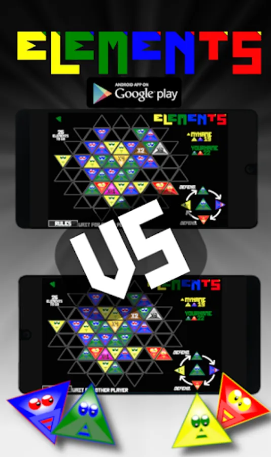 Choose one of the four different boards to play on. Depending on the board there are 20. 15 or 10 stones of each element and four multipliers that are randomly chosen every players turn. Move a stone to an empty space or hit an element from the board then place the chosen stone.