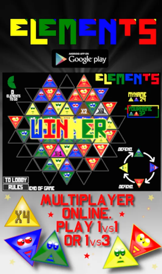 Elements Online is a two or four player online board game. Defend your element on the board as well as you can.