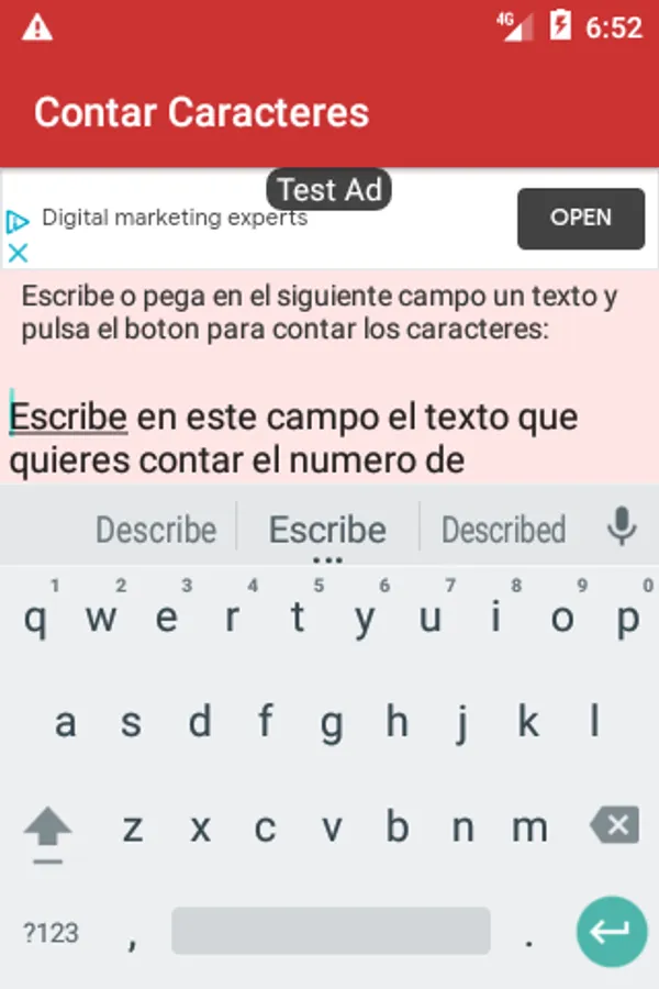 Type or paste in the four available text your writing, and press the COUNT button to see how many characters (including letters, numbers, spaces and punctuation symbols) have.