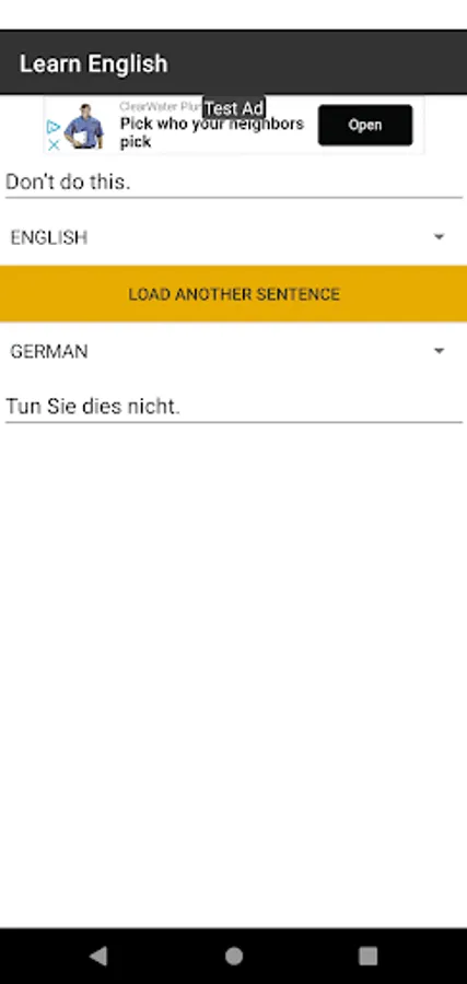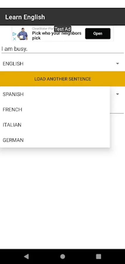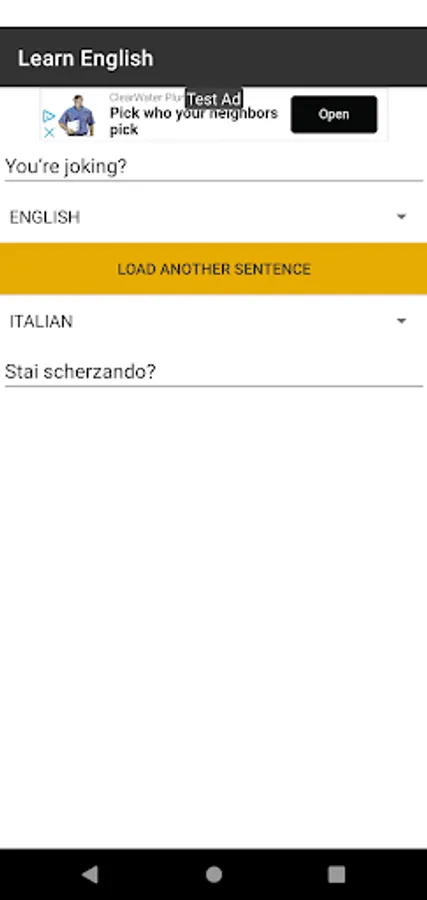 Learn English with this app, you will have common english sentences used in daily life. You will get the translation of the sentences in your language, for example SPANISH, FRENCH, ITALIAN or GERMAN.