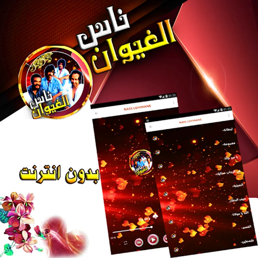 All the immortal variety of Nass El Ghiwane works easily without internet with the option to choose.