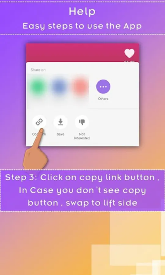 Automatic Capture : Just open your likee app and copy the URL of the likee video you then likee Video Downloader will auto detects likee video from URL and Download video Automatically.