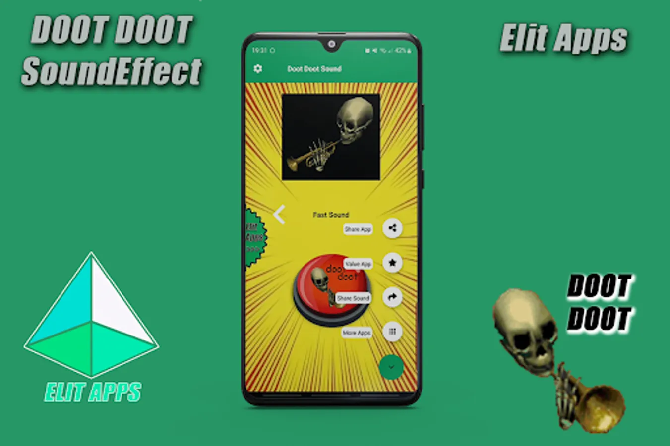 Skull Trumpet, also known as "Doot Doot", is an animated sprite image of a skull-faced character playing the trumpet.Press the button and you can listen whenever you want to this fabulous skeleton playing the trumpet, ideal for playing jokes and having a good time!