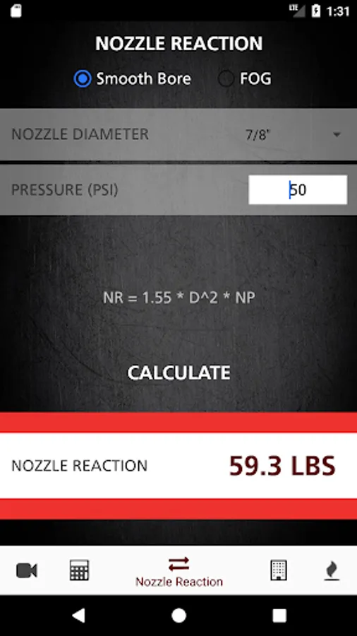 • Nozzle Reaction for Fog Nozzles