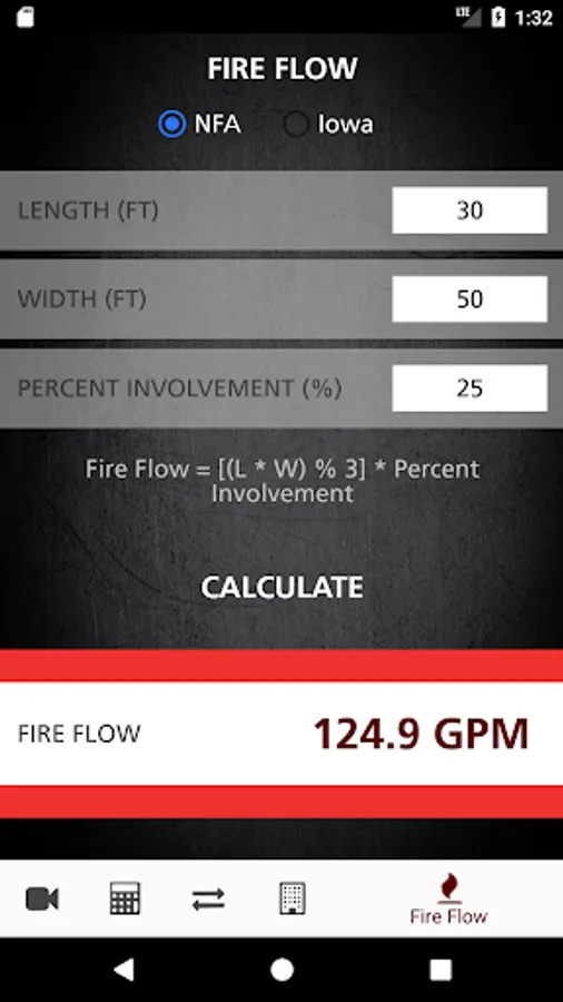 • Fire Flow Formula Calculators for both the NFA and Iowa Formulas