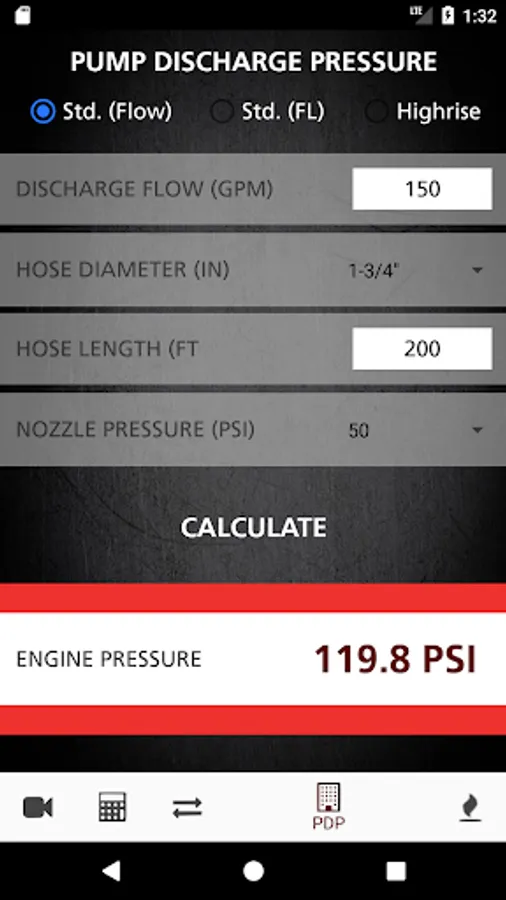 • Pump Discharge Pressure for standard layouts, with ability to input hose coefficient depending on make and inside diameter
